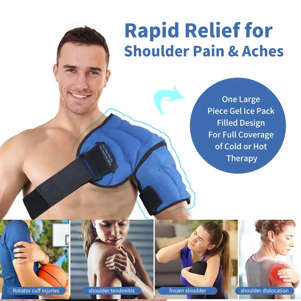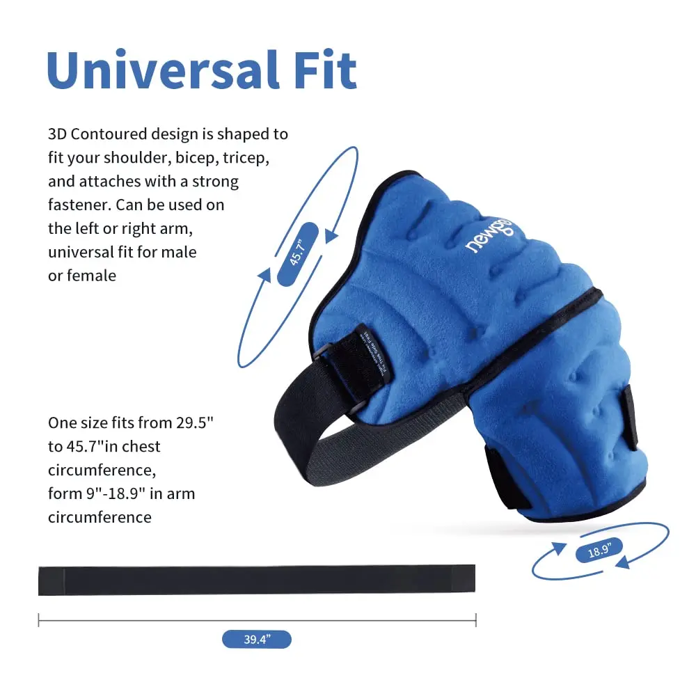 NEWGO shoulder ice pack wrap specially designed for shoulder and arms. Shoulder icing wrap is effective to relieve pain from rotator cuff injuries, shoulder tendonitis, frozen shoulder, shoulder dislocation, biceps tear,shoulder replacement surgery,general muscle aches,shoulder fracture, stiffness,inflammation and tightness.Helps to speed recovery from shoulder surgery.